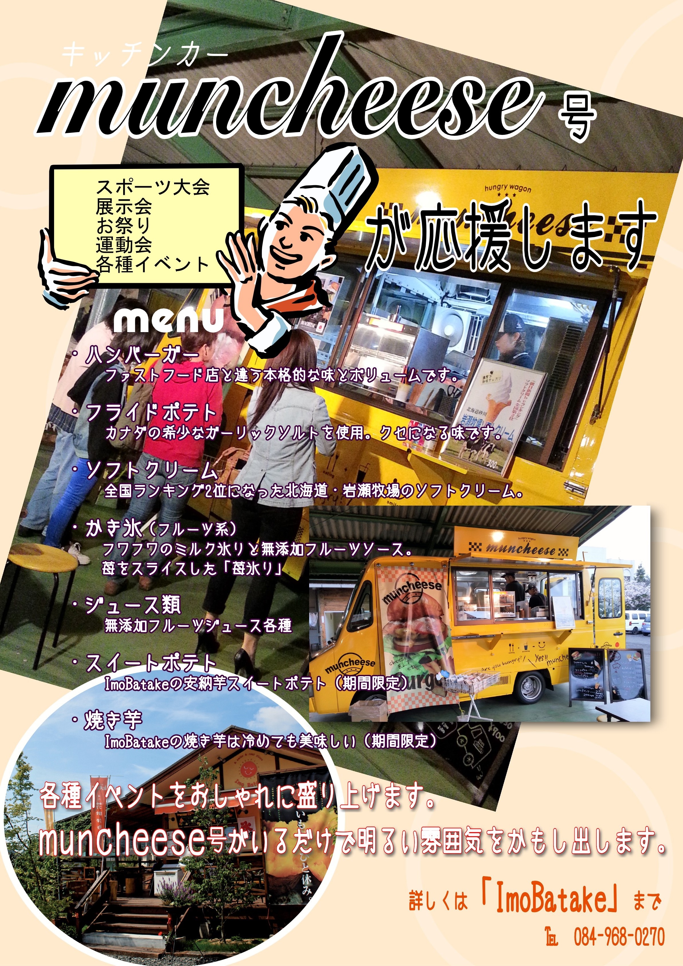 当店ではキッチンカー(muncheese号)にて各種イベント、会社への出店などしております。